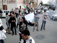 Claksonate, trombe e grida "a'ttrimmą la terra", con sventolio di bandiere di tutte le dimensioni. La gioia espressa in strada non aveva etą nč distinzioni di sesso, anzi le pił accese e felici sembravano le donne.