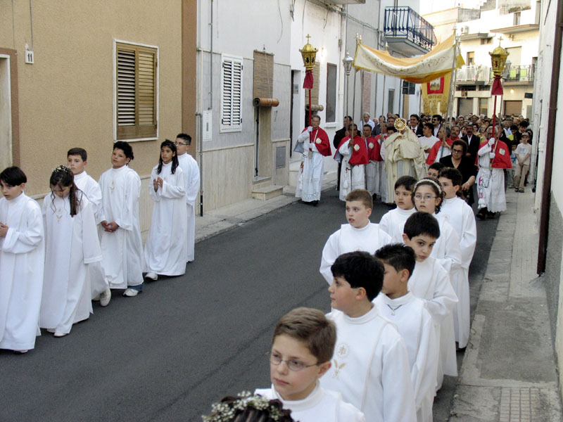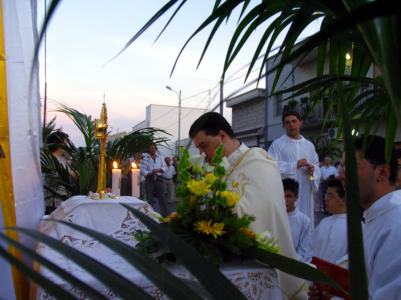 Ma l'aspetto che ha caratterizzato la celebrazione del "Corpus" di quest'anno e che Don Cosimo nel suo ringraziamento finale ha ancora una volta ripreso, è stato una avvertita consapevolezza di quanto l'Uomo, oggi più di ieri, sente il bisogno di una maggiore vicinanza a Dio per non restare ingabbiato in falsi valori ed in illusori stili di vita che sempre più spesso generano cocenti disillusioni, rotture, cronache. Ed è proprio sull'importanza della "comunione" con Dio, per "sentire" e vivere i Suoi valori di vita, che la Chiesa per l'anno Eucaristico ha scelto come Tema la significativa frase pronunciata nell'anno 304 dai 49 Martiri di Abitene in Tunisia: <<Senza la Domenica non possiamo vivere.>>